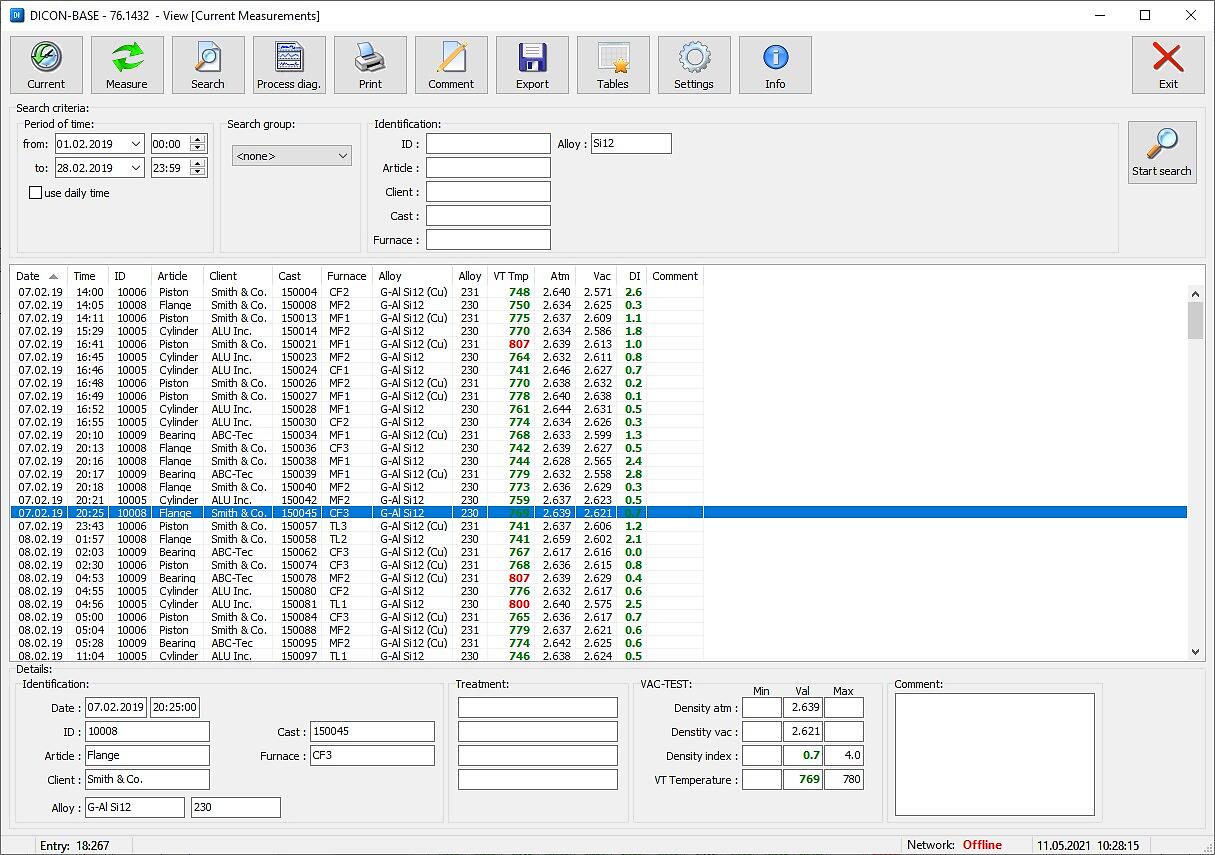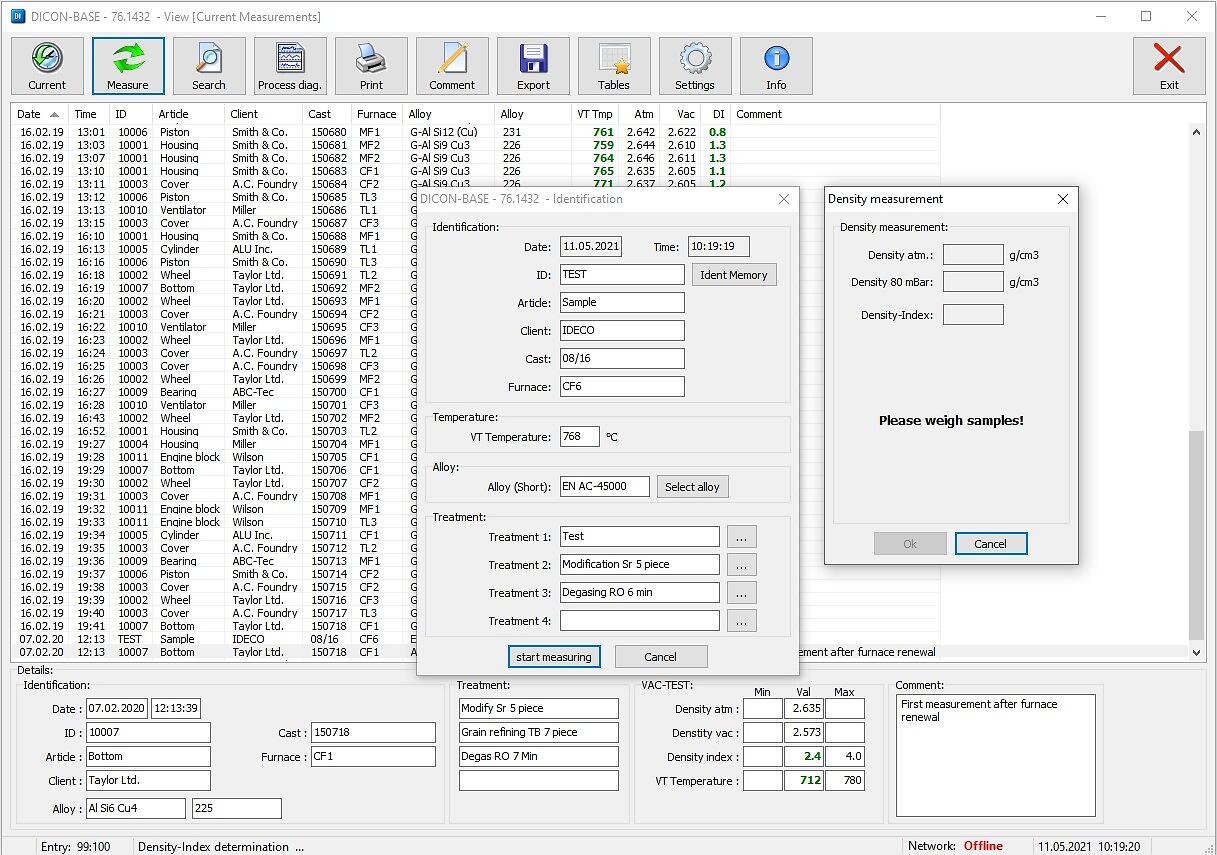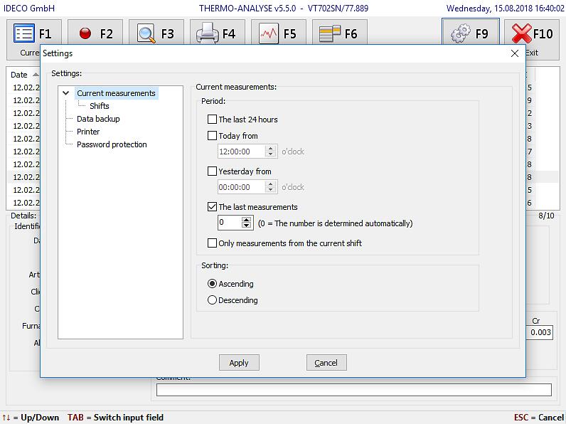 具有用于控制的内置 PC 的设备(热分析仪/测氢仪)以及一些 VAC-TEST 设备(例如 VT702SN / VT711SN)也始终具有测量结果的文档(存储/存档)。