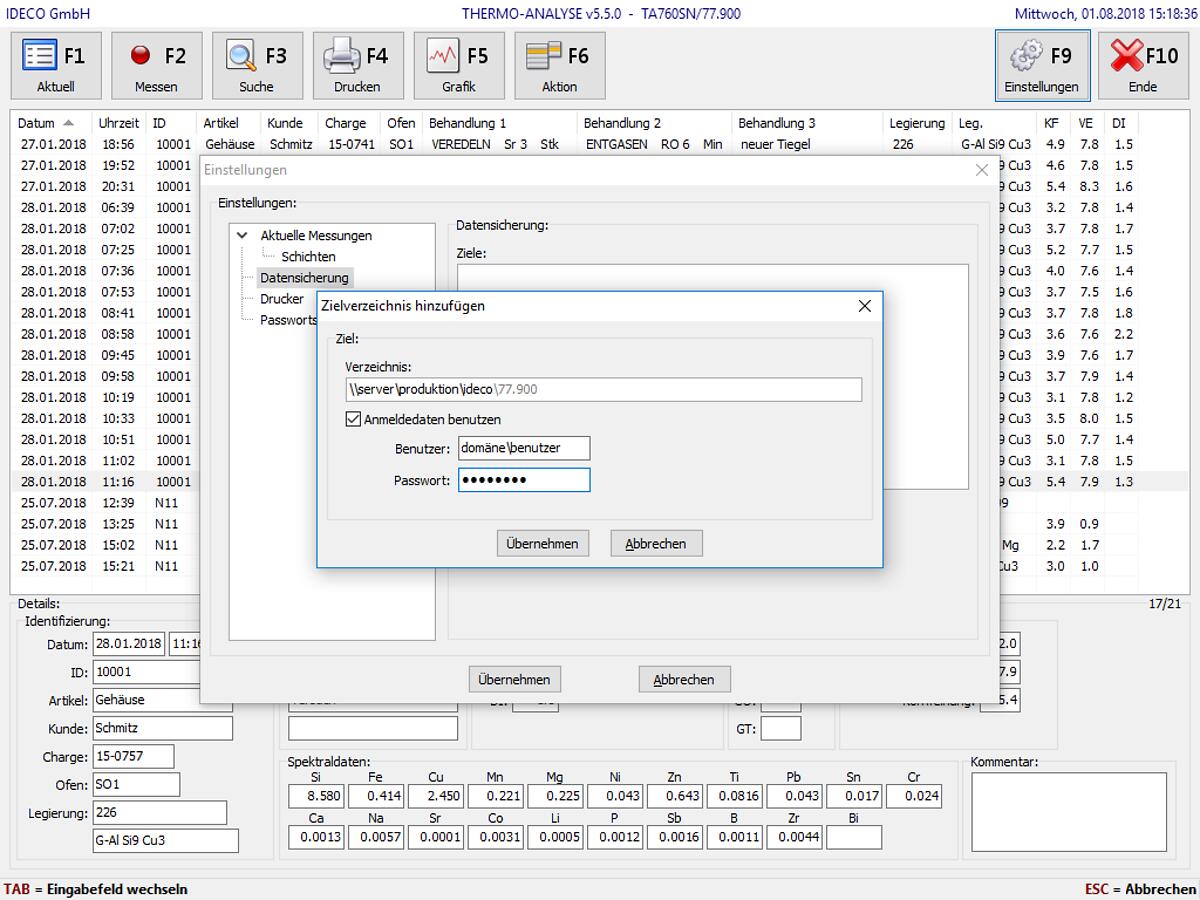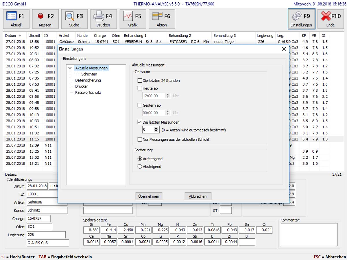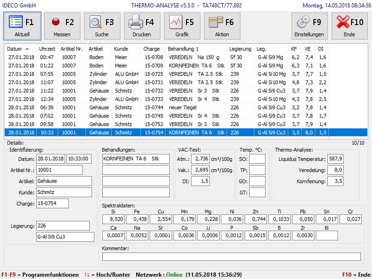 Geräte, die für Ihre Steuerung einen eingebauten PC besitzen (Thermo-Analyse / Hydrogen-Analyser), sowie manche VAC-TEST Geräte (z.B. VT702SN / VT711SN) verfügen immer auch über eine Dokumentation (Speicherung/Archivierung) der Mess-Resultate.