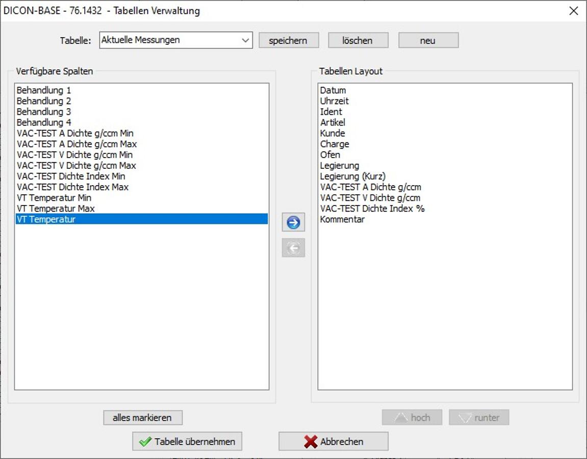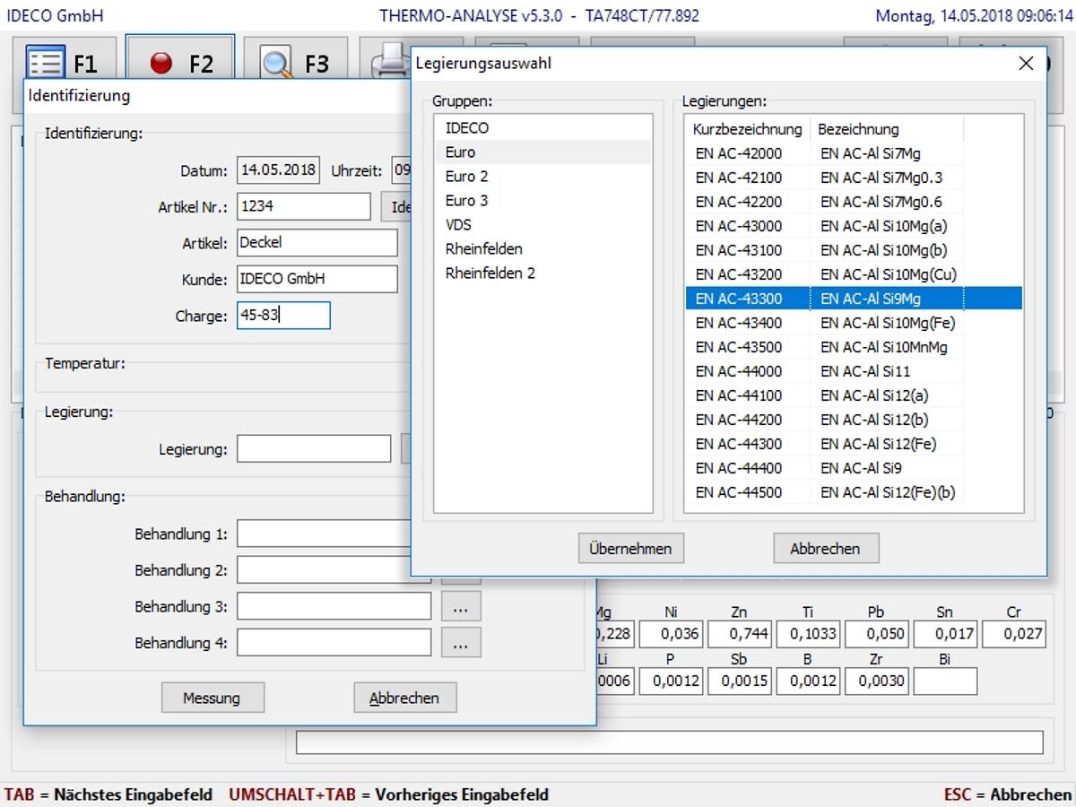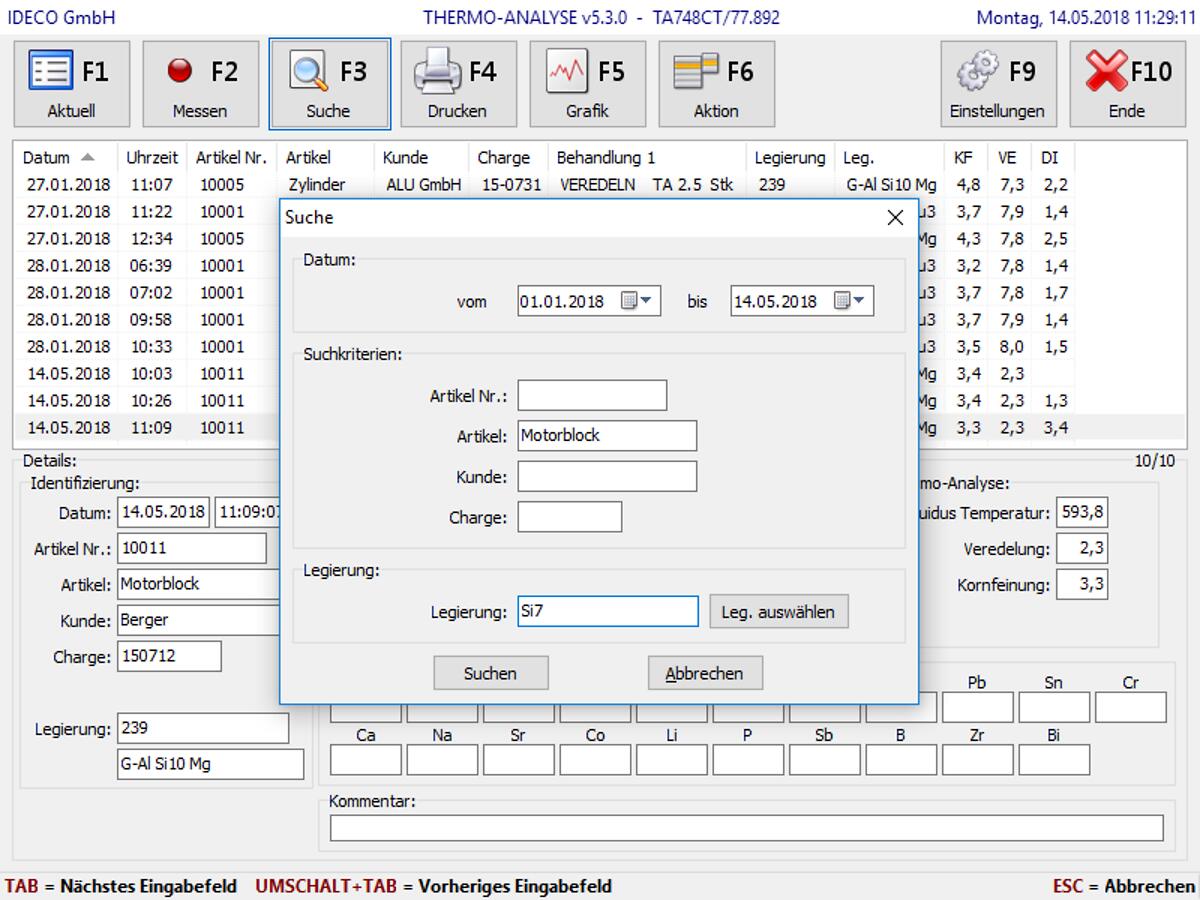 Software zum automatischen Einlesen und Verwalten von VAC-TEST-Daten mit anwenderbezogener Proben-Identifizierung sowie tabellarischer und grafischer Auswertung der Daten zur Findung von Abhängigkeiten und Klärung von Einflüssen.