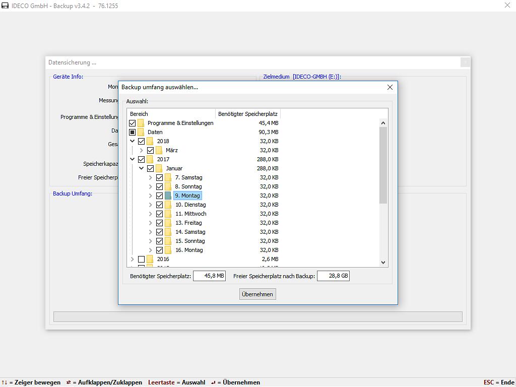 Manuelle Sicherung der Messungen auf USB-Datenträger